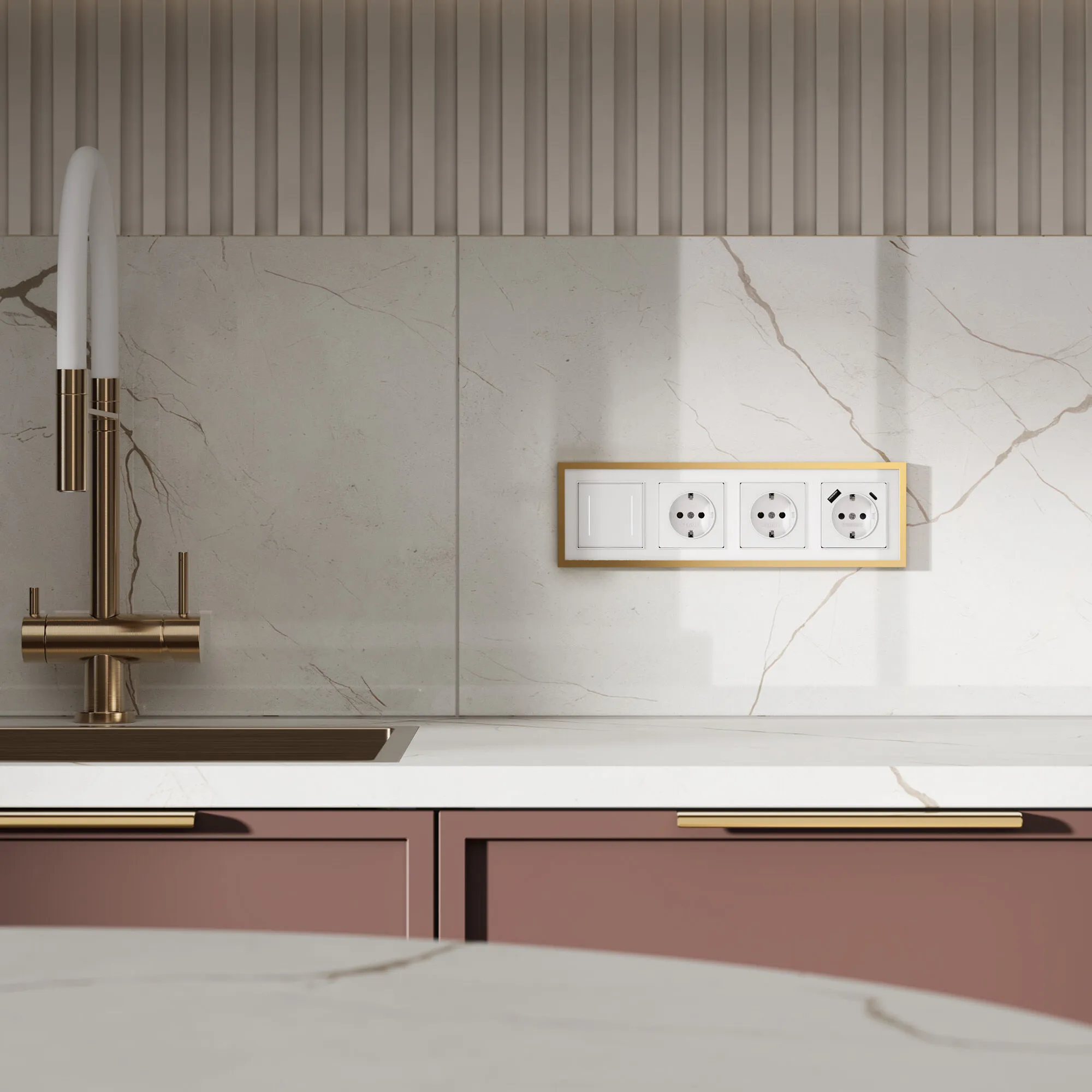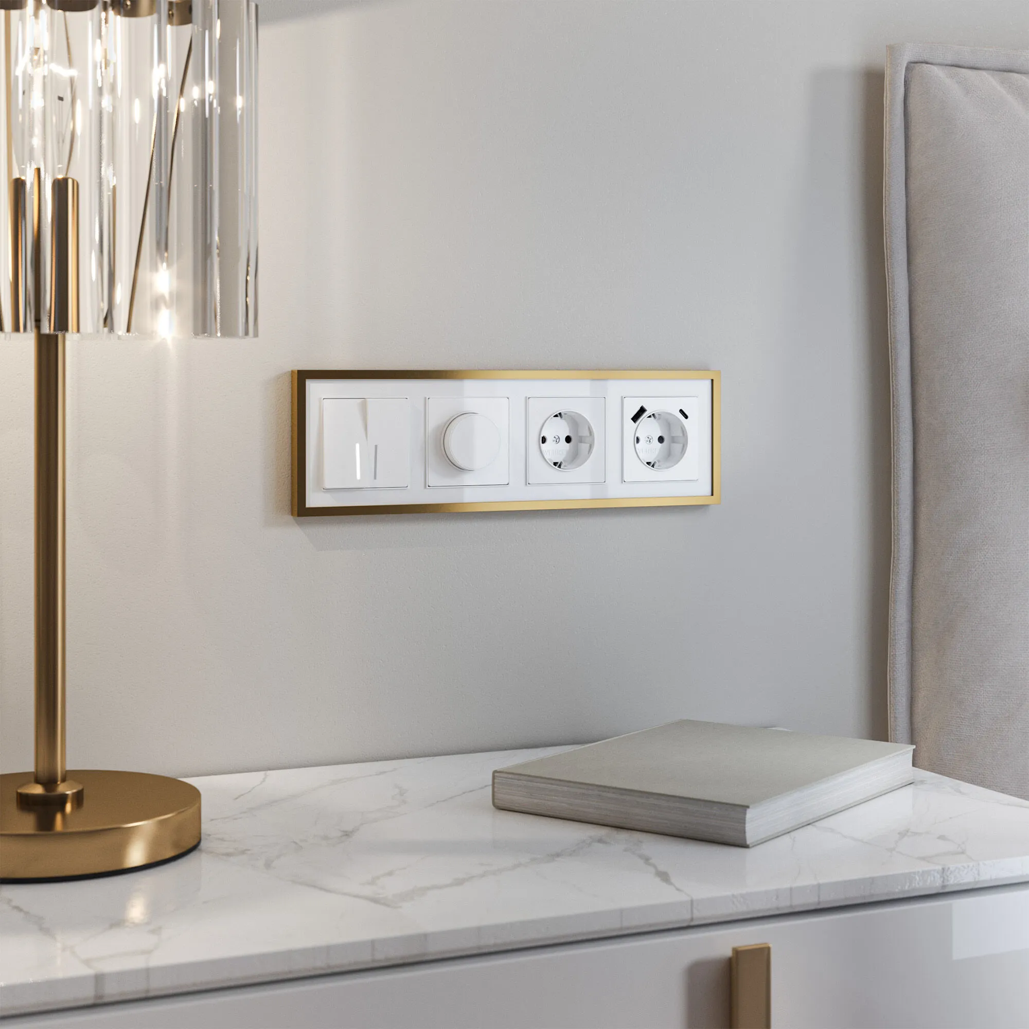 Завершите образ вашего дизайна с помощью рамки серии Baguette от Werkel. Это уникальное сочетание металлической окантовки цвета латунь и акрилового фона белого цвета придаёт изделию особой элегантности и делает его ярким акцентом в любом интерьере.