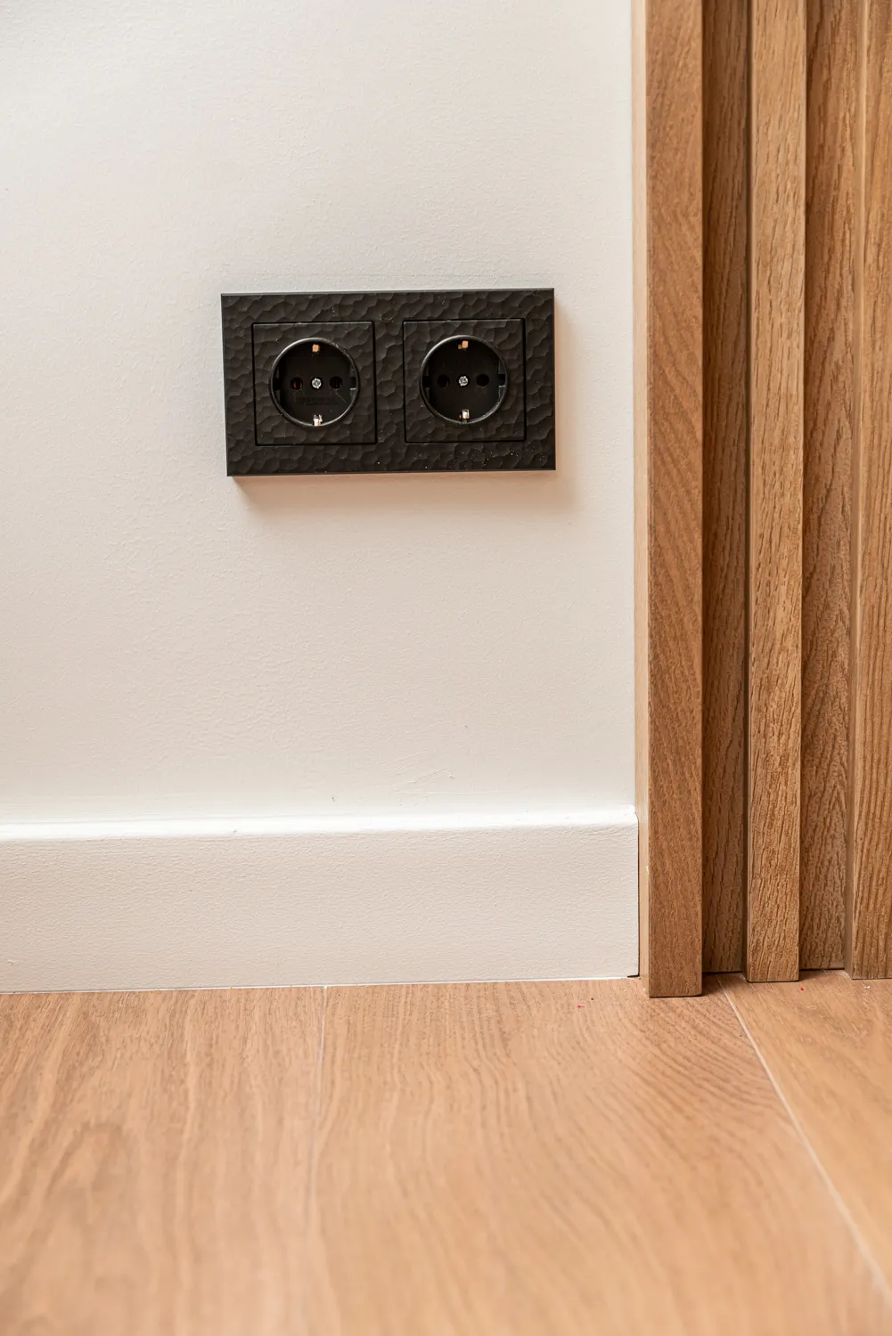 Интерьер поражает своей многогранностью: каждая деталь продумана до мелочей. Особое внимание уделялось техническим решениям — для проекта были выбраны выключатели и розетки серии Hammer. Их дизайн вдохновлен природной текстурой камня, но выполнен из ударопрочного и негорючего поликарбоната. Благодаря уникальной 3D-фактуре, они создают эффект ручной работы, будто рисунок выбит молотком. Такие элементы не только функциональны, но и стильно дополняют интерьер, подчеркивая его натуральность .